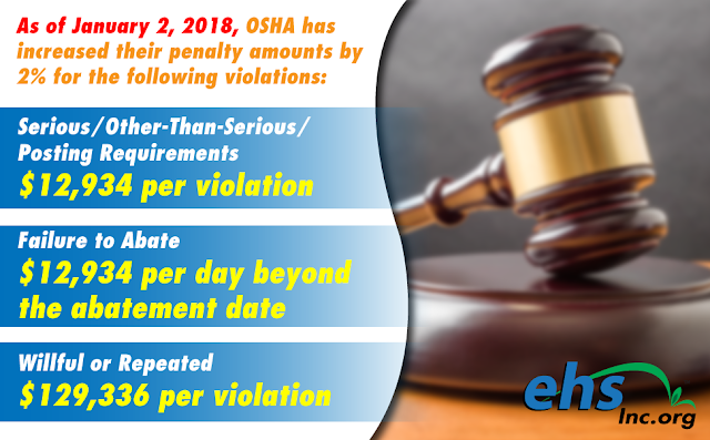 The Occupational Safety and Health Administration has adjusted their penalty amounts last month by 2% to reflect current inflation rates.